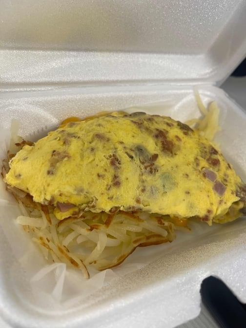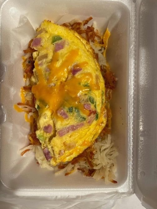 Diced ham, green and red peppers, onion and cheddar