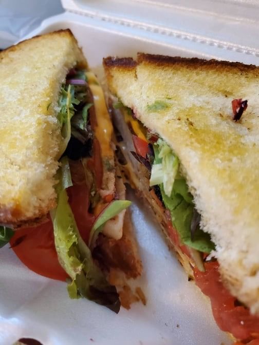 Chicken breast, bacon, tomato, avocado, lettuce American cheese, bread