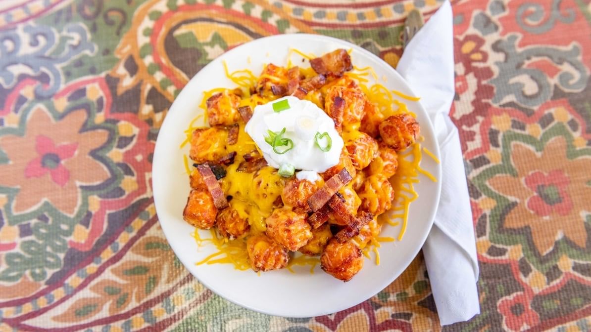 Loaded with melted cheese, bacon, onions and sour cream
